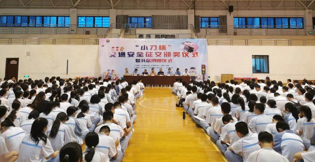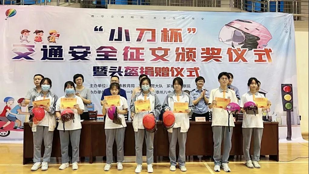 会后,学校组织召开“小刀杯”交通安全征文颁奖仪式暨头盔捐赠仪式,由漳州市教育局、芗城交警大队、芗城区检察院、校方领导一同为“小刀杯”文明交通出行征文比赛获奖的同学进行颁奖。