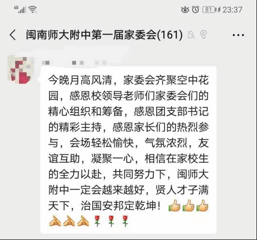 家委会会长陈漳新宣读了新一届家委理事会成员分工,并发表感言。