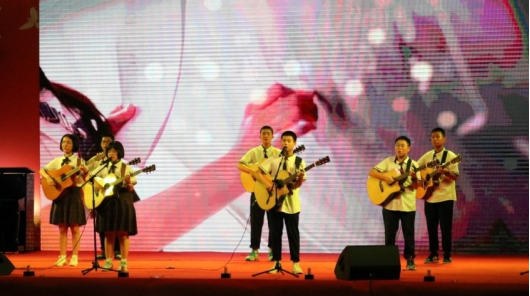 晚会中,学校教职工代表、家长委员会家委代表同台献艺,家校共欢、师生同乐,其乐融融!学校领导、毕业班教师还寄语勉励全体初高三毕业班学生,并送上纪念礼品。