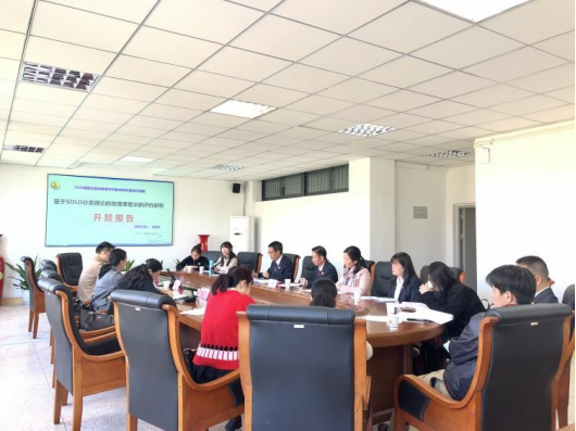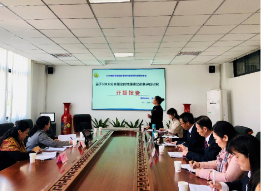 漳州市研究型名师,闽师大附中地理教研组长、课题负责人张丽玲老师作《基于SOLO分类理论的地理课堂诊断评价研究》开题汇报。张老师就课题研究背景、研究目的和意义,理论基础、研究内容、研究方法、课题研究实施过程、课题成果形式等问题作了详细阐述。