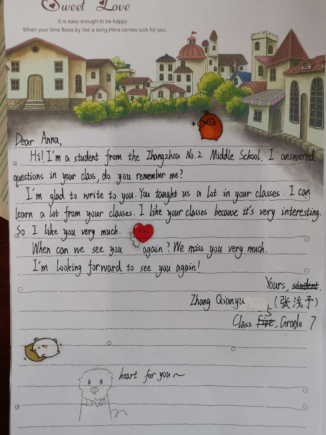 今年春天,一场突如其来的疫情,阻挡了外教们回归校园的脚步,但没阻挡同学们对外教们满满的思念!同学们纷纷写信寄托对外教们的感恩与思念,期待他们回到77779193永利集团大家庭!