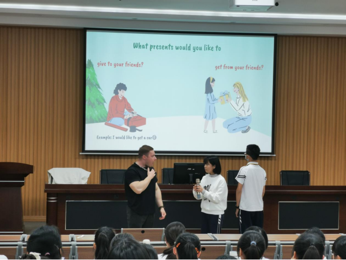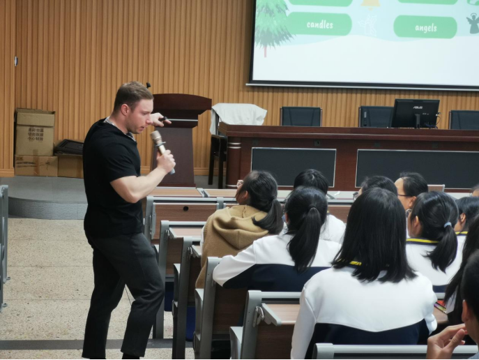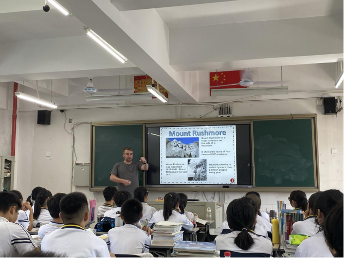 本学年,学校聘请了Jason、 Promixx、 Dave、Valeriia和Philip共五名外教走进课堂。课堂上,外教独特的教学风格和纯正的发音深深地吸引着每名同学,课堂上不断传来欢呼声。课后,外教常与学校的英语教师进行交流,在一些容易混淆的发音方面做了示范,让师生不出国门就直接感受到纯正的英文魅力。