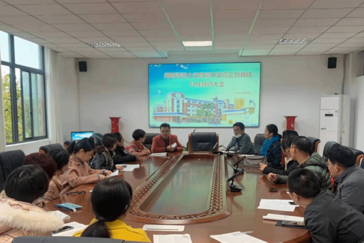 朱志成副教授每天大清早进校,推门听课,深入高三毕业班、高中创新班课堂一线;分别举行高中年段创新班工作研讨会,与高三英语备课组、各年段长、高中各年段创新班教师教研交流;辅导创新班学子。