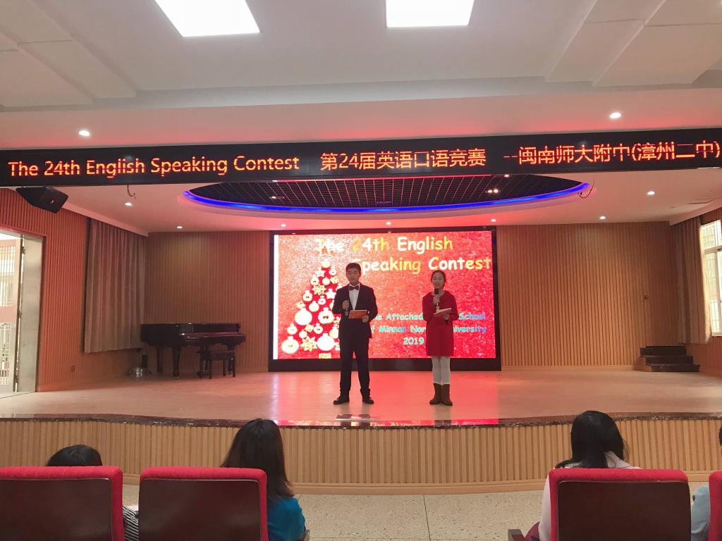 经过初赛、复赛等环节层层选拔,来自初、高中部共26名同学脱颖而出,进入决赛。决赛邀请了陈彩虹、游淑华等闽南师大校内外专家及闽南师大外国语学院优秀学生担任评委。