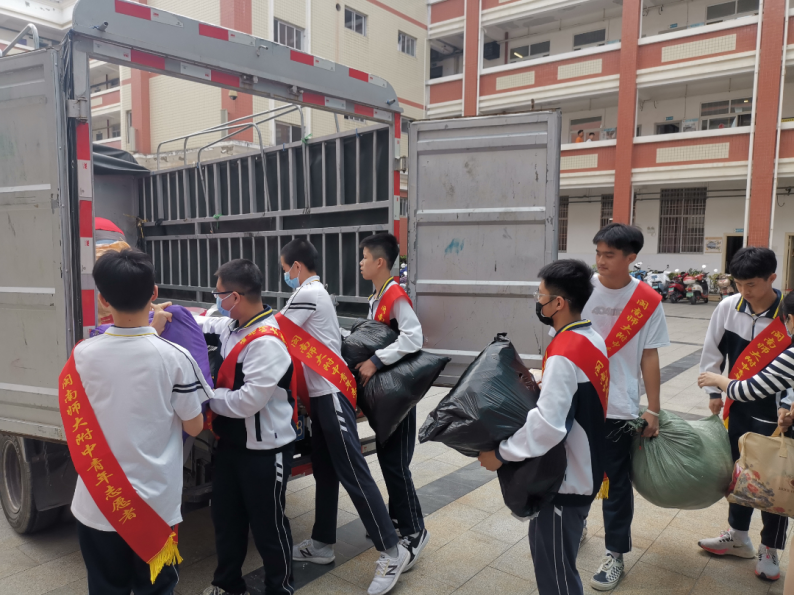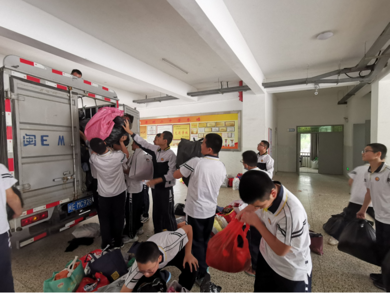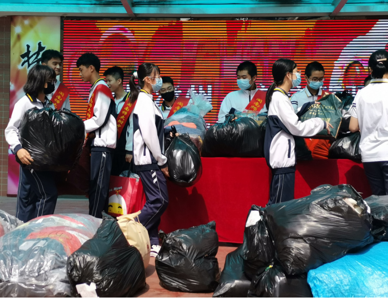 4月初,学校政治处、团委会就通过发放倡议书、组织召开班会等方式,发动学生踊跃捐赠的衣物,请各班家委会成员协助分类打包。此次收集的衣物将由漳州市爱心物品回收中心整理消毒后寄往新疆。