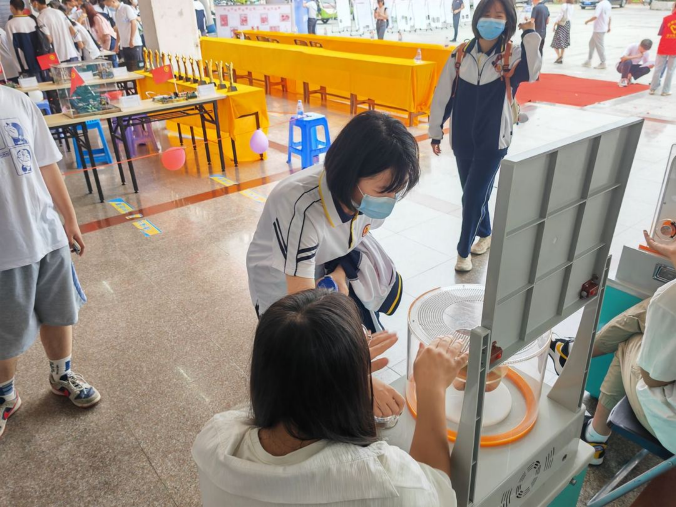 本次大观园活动以“赋能青春喜迎二十大,创新创造筑梦新征程”为主题,将中国共青团成立100周年与物理实践融合,既有体现科技创新的电子设计大赛作品展区、教具作品区、义务维修区、校友创业展示区,又有趣味十足的科普大篷车、科普游戏区和变废为宝区。创新班学子们眼前一亮,乐此不疲。