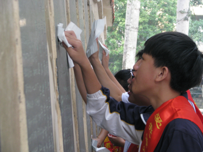为了更好地发挥学生志愿者的作用,校团委组织学生志愿者进行校园书法清洗活动。