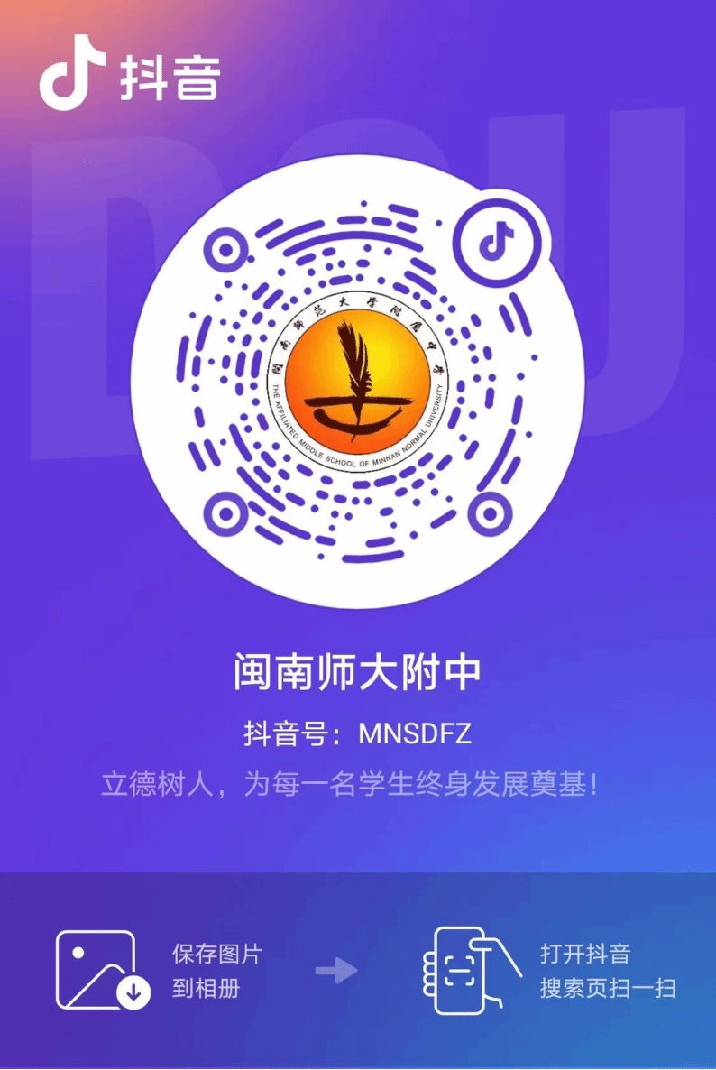 扫描二维码更多精彩视频,欢迎保存图片,打开抖音,扫码关注学校抖音短视频号!